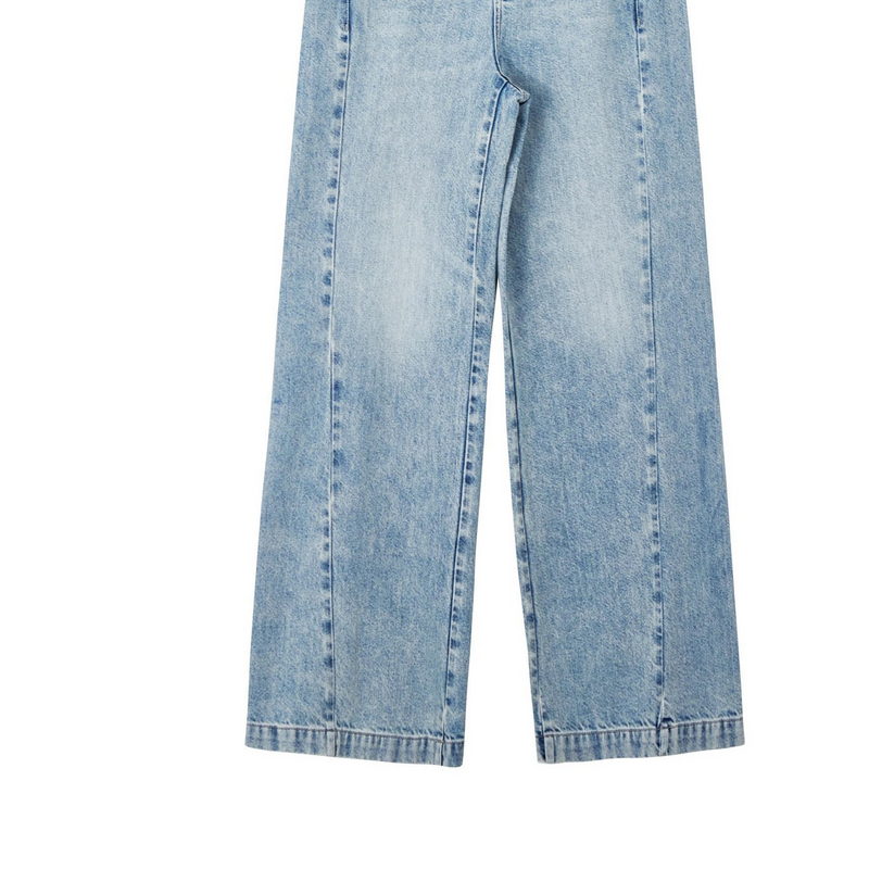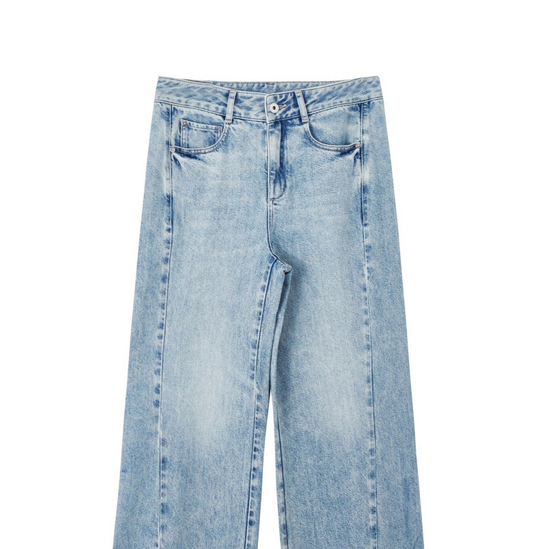 百搭复古水洗磨白牛仔裤 专柜新款 浅蓝色阔腿裤 TI尤缇2025春季 女
