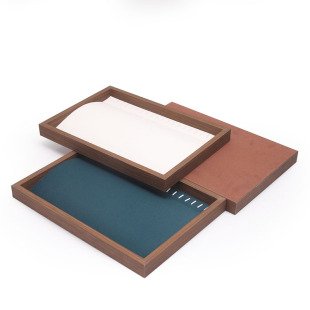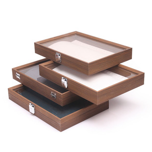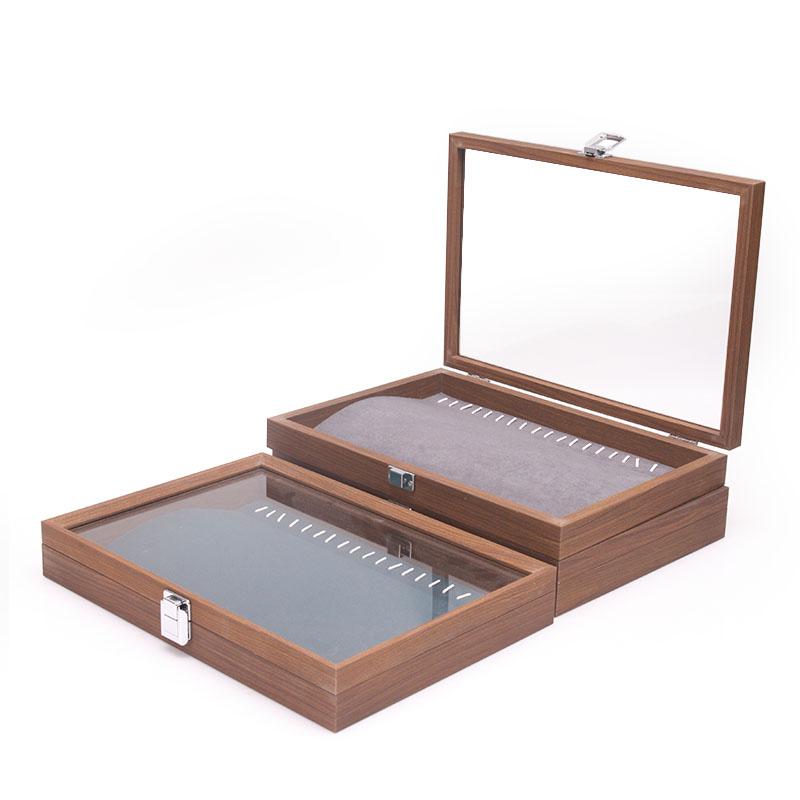 复古黑胡桃木色项链展示盒手链吊坠收纳整理箱钢化玻璃透明盖饰品