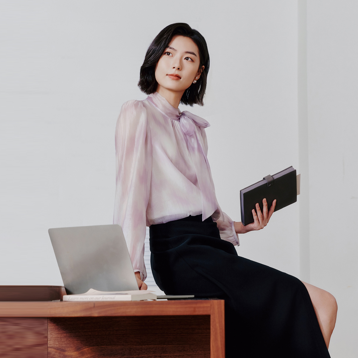 复古质薰衣紫飘带领口小衫 法式 1F11S1217 专柜新款 歌蒂诗2025秋季