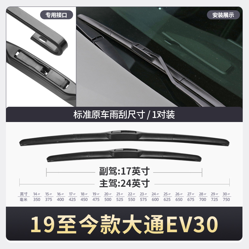 适用上汽大通EV30雨刮器原装 原厂纯电动汽车EV30L无骨胶条雨刷片