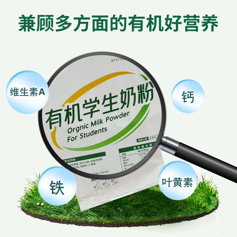 河套有机学生奶粉300克内蒙古全脂高钙袋装 叶黄素青少年早餐冲饮