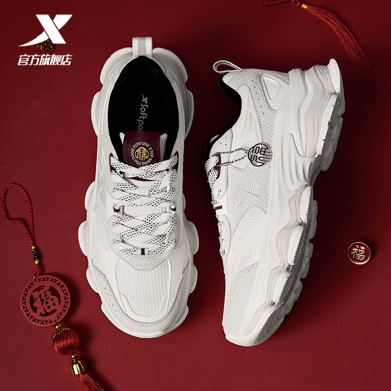 新年款 2025春季 时尚 潮鞋 女 特步山海休闲鞋 情侣厚底百搭老爹鞋 男鞋