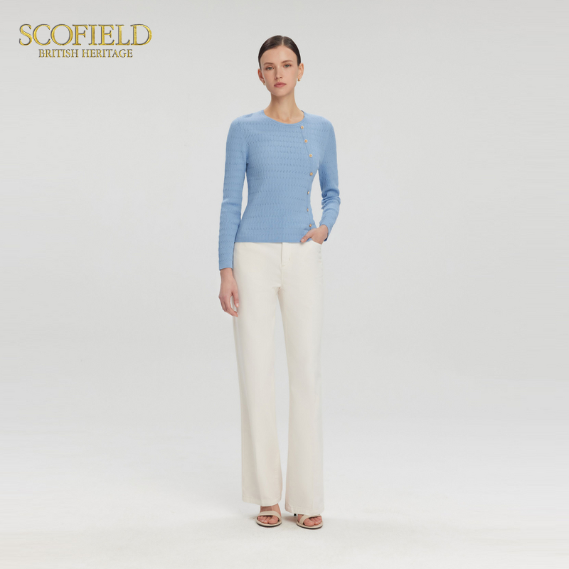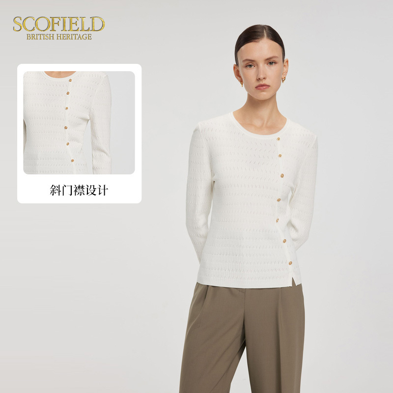 2025夏季 含莱赛尔立体提花斜襟针织衫 Scofield女装 新品 可水洗