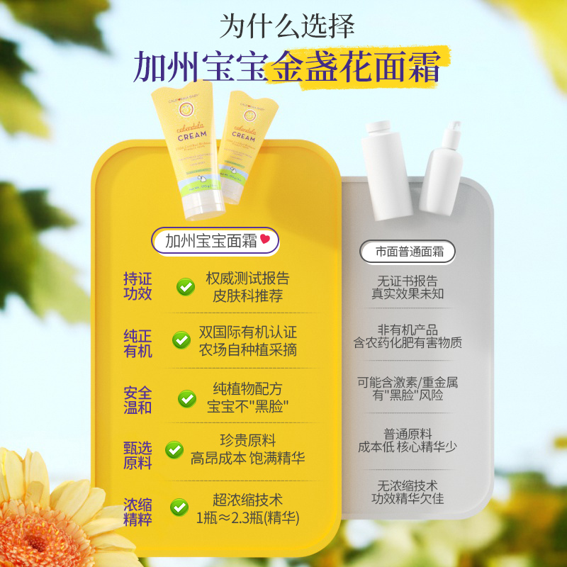 加州宝宝金盏花面霜儿童润肤乳秋冬新生儿保湿 170g囤货安心装