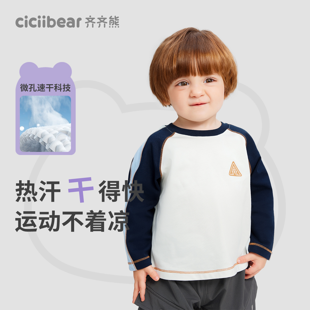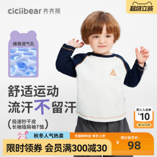 吸湿速干 2025新款 齐齐熊宝宝T恤长袖 男童插肩袖 儿童上衣 春秋款