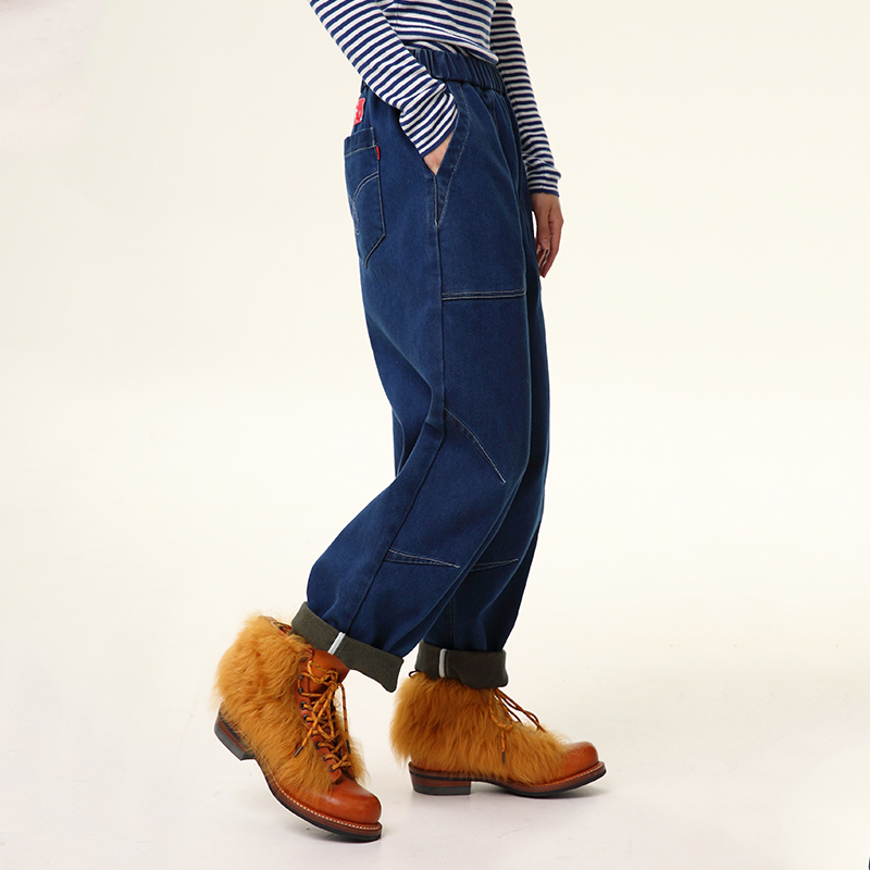 商场同款 胖MM显瘦裤 白目自松紧腰直筒牛仔裤 新品 子 女2024冬季