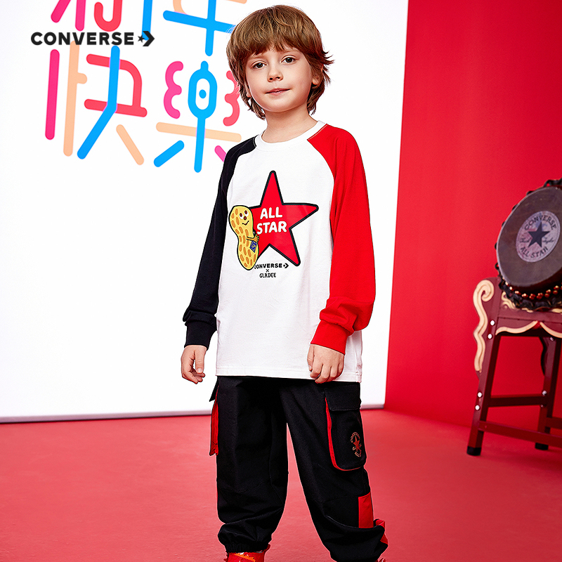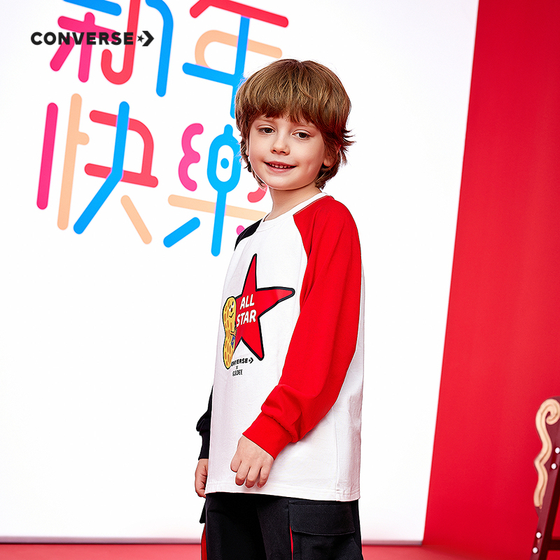 GLADEE联名 新款 匡威童装 T恤2025春季 本命年红打底衫 男童长袖