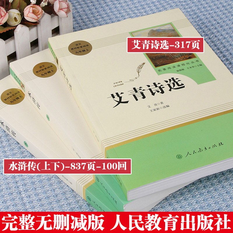 包邮 艾青诗选水浒传原著正版 九年级上下册必读课外名著阅读书籍初三初中生语文教材配套阅读书目无删减 社完整版 3册人民教育出版