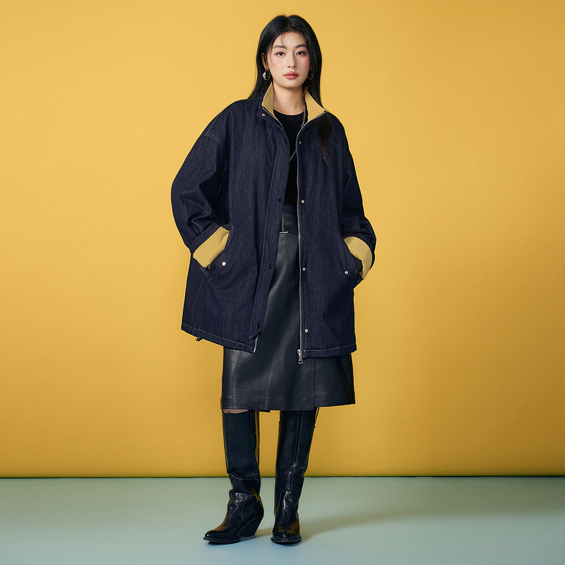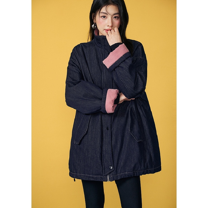 拼接轻薄外套黑色街头 百搭冬季 森马羽绒服女中长款 宽松防泼水时尚