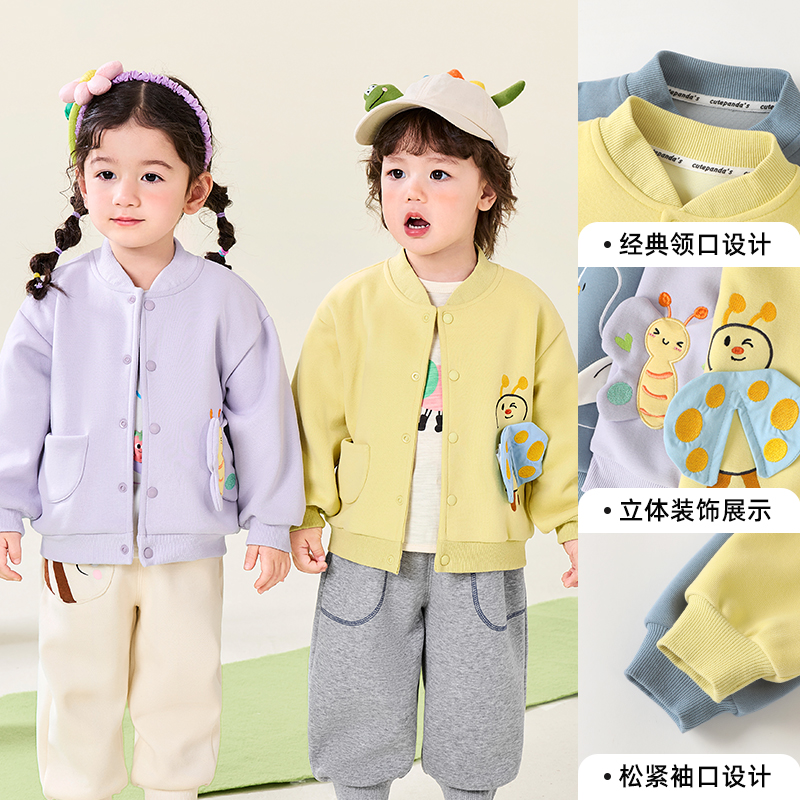 女宝儿童小童上衣 长袖 咔咔熊猫男童外套春装 婴儿衣服立体造型春季