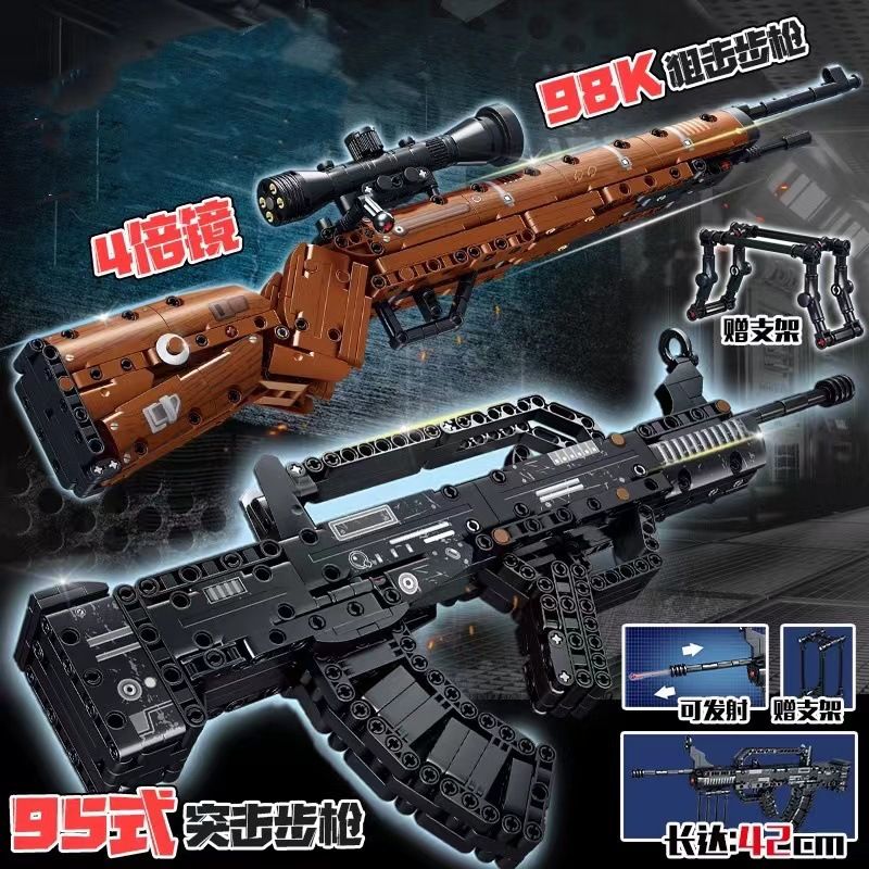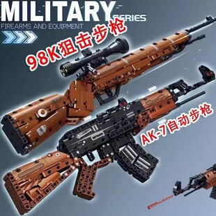 2025新款 连发沙漠之鹰黑儿童益智男孩玩具98k可射 科技积木枪拼装
