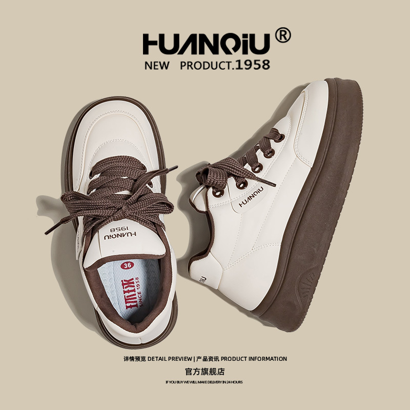 双11预售 休闲小白板鞋 张凌赫同款 增高鞋 预 百丽板栗厚底德训鞋