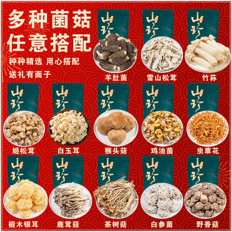 礼盒大礼包云南土特产山珍菌菇羊肚菌野生干货汤料包送礼鹿茸菇