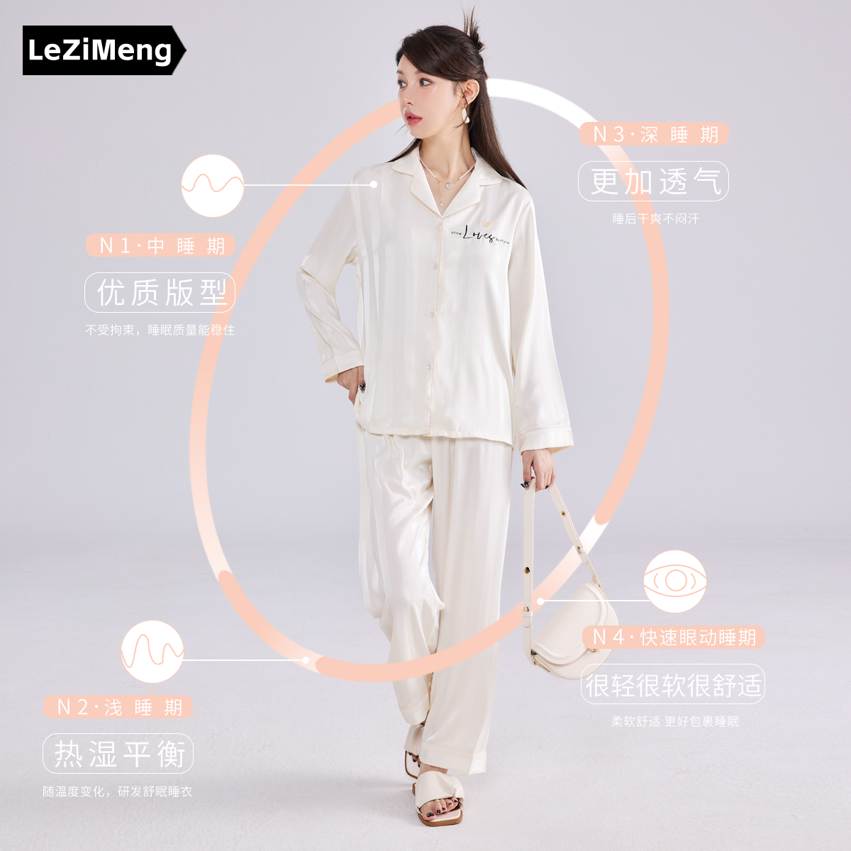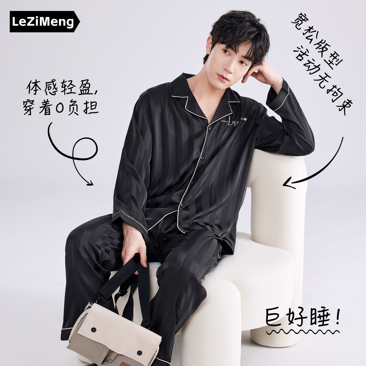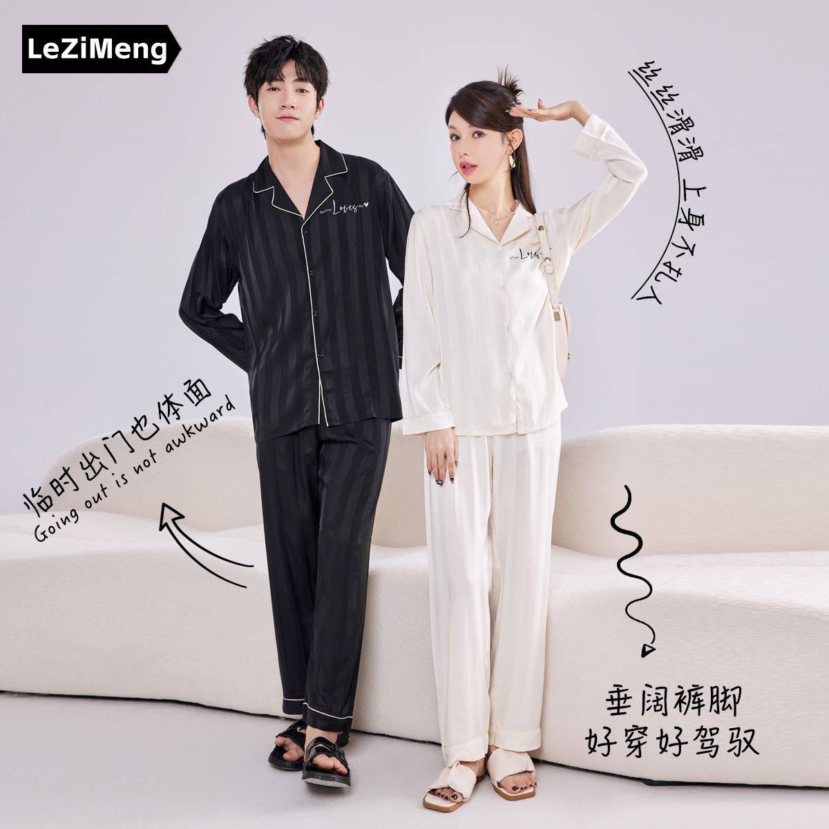 睡衣女套装 秋季 丝长袖 春夏冰丝高级感男士 家居服 长裤 乐姿梦情侣款