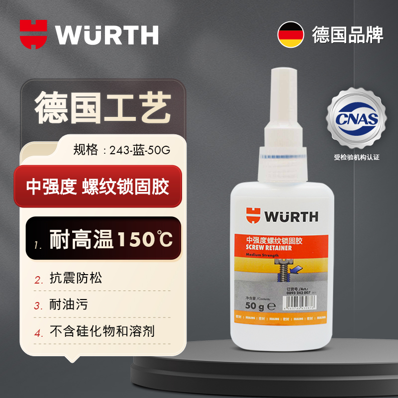 WURTH伍尔特243螺纹胶50g密封胶轴承固定胶专用胶德国263高强度