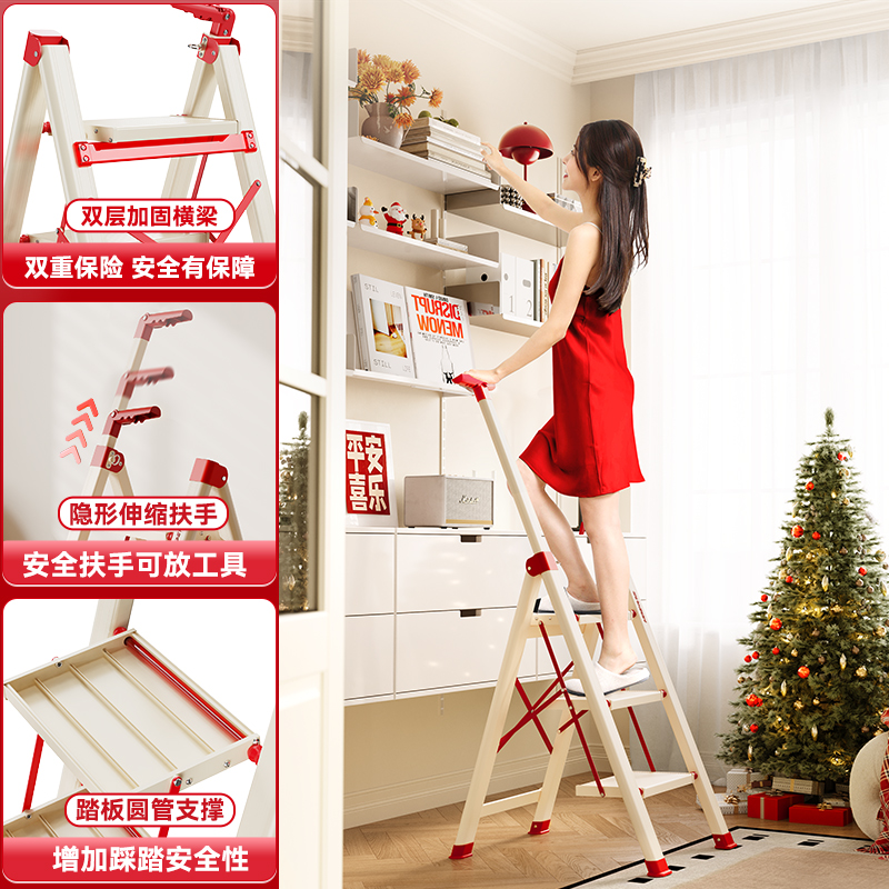 奥鹏家用多功能折叠伸缩梯子安全加厚铝合金人字梯三步楼梯小梯凳