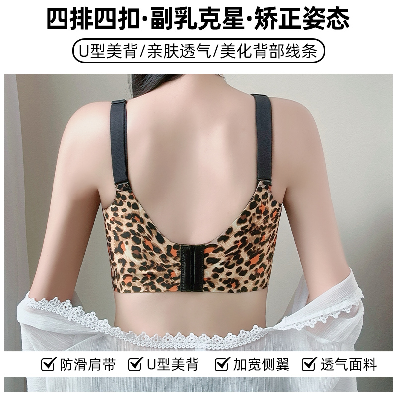 2025新款 文胸罩秋冬 豹纹性感内衣女大胸显小聚拢收副乳防下垂大码