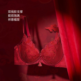 爱慕24秋冬好事将近内衣女红本命年软钢圈薄大胸显小文胸内裤 套装