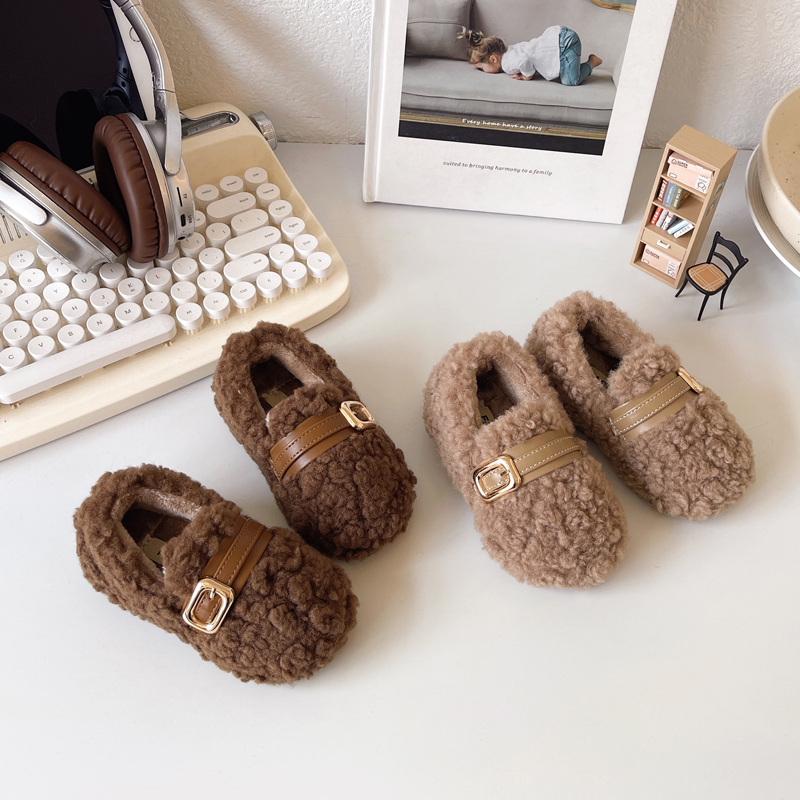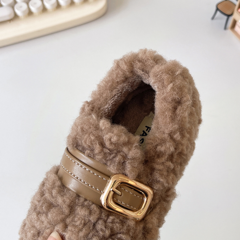 女童保暖卡通宝宝棉鞋 男童毛毛拖鞋 室内家居秋冬季 斑比儿童棉拖鞋