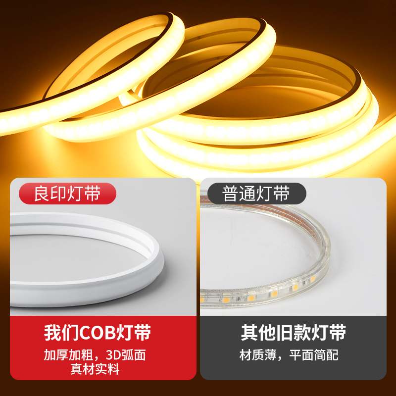 led灯带220v户外防水超亮自粘线形灯槽家用客厅吊顶COB工程软灯条