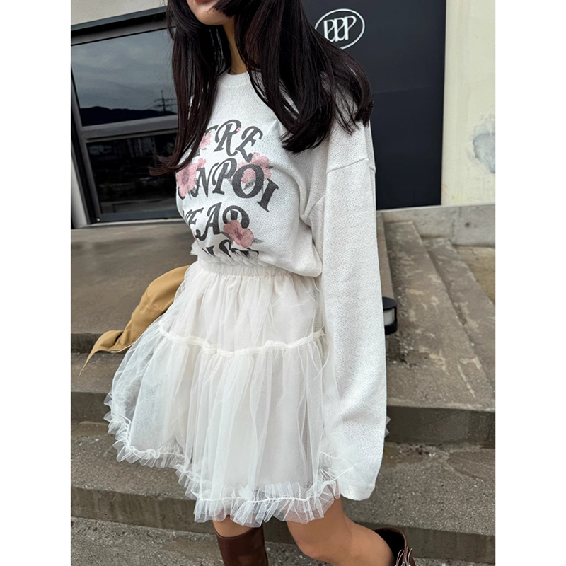 双层网纱半身裙女早春韩版 高腰显瘦大摆A字蓬蓬短裙子 新款