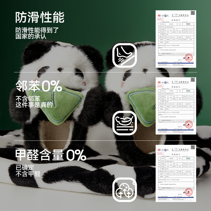 卡通室内包跟小童宝宝毛绒家居鞋 熊猫儿童棉拖鞋 防滑男童女童冬季