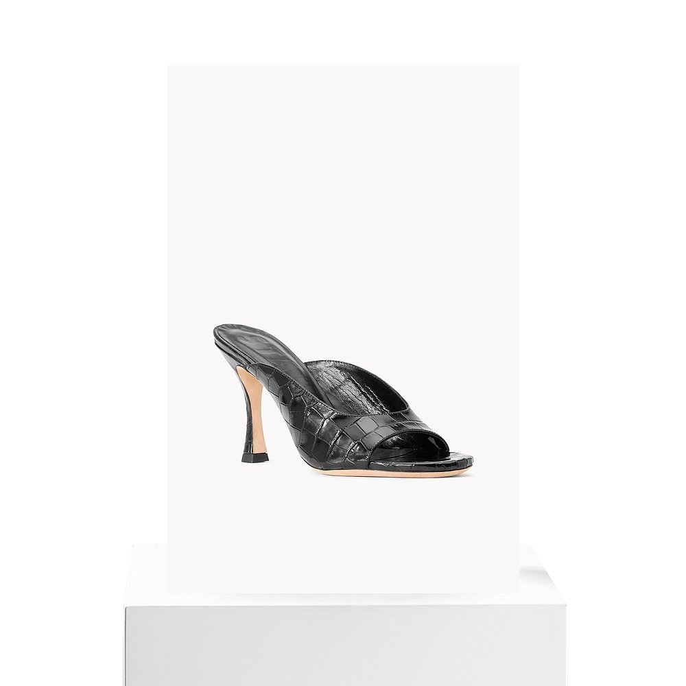 黑色鳄鱼压纹 黑色鳄鱼压纹真皮穆勒凉鞋 美 staudSylvia 自营