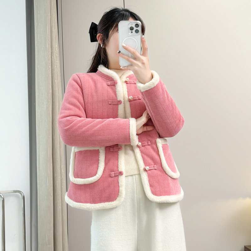 拼接灯芯绒翻领棉袄小个子宽松外套女装 三福棉衣棉服2025新款 冬季