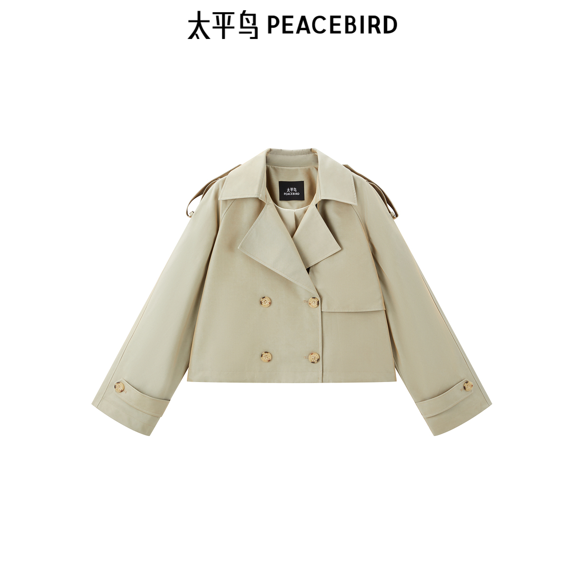 太平鸟2025年新款 小个子宽松廓形风衣外套女A1BEF1502 莱赛尔短款