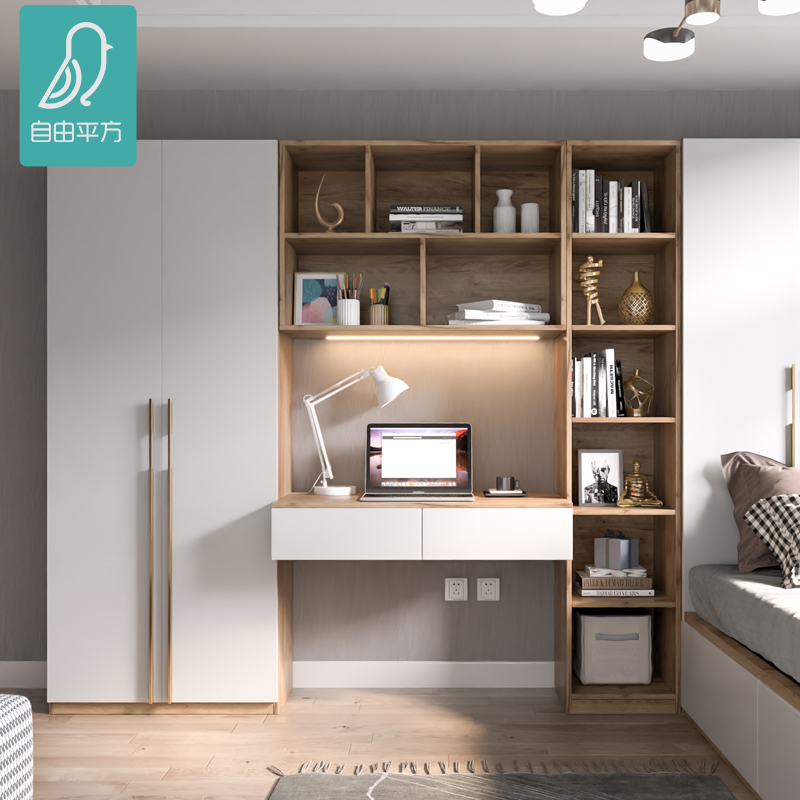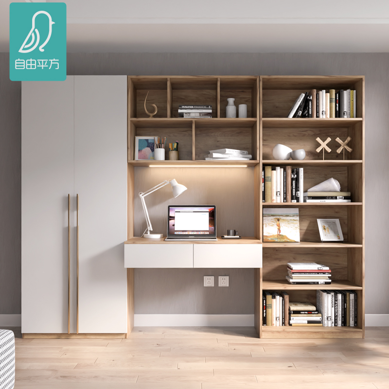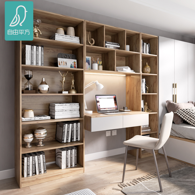 书架一体靠墙实木连体书桌柜定制现代简约学习桌多功能写字台小zy