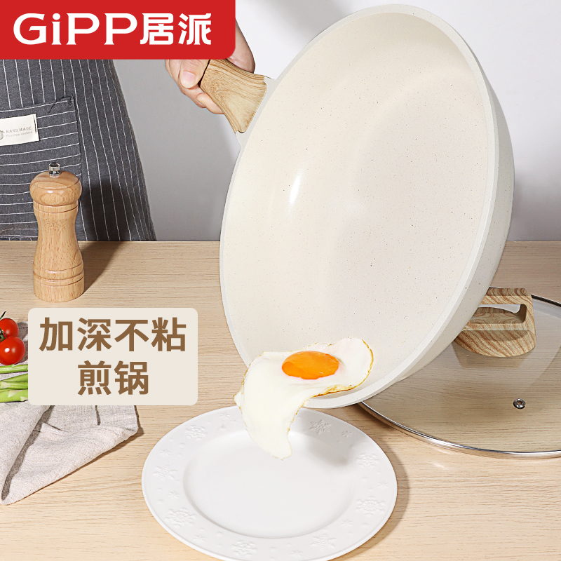 居派平底锅煎锅家用牛排煎蛋麦饭石不粘锅炒锅无涂层燃气电磁炉锅