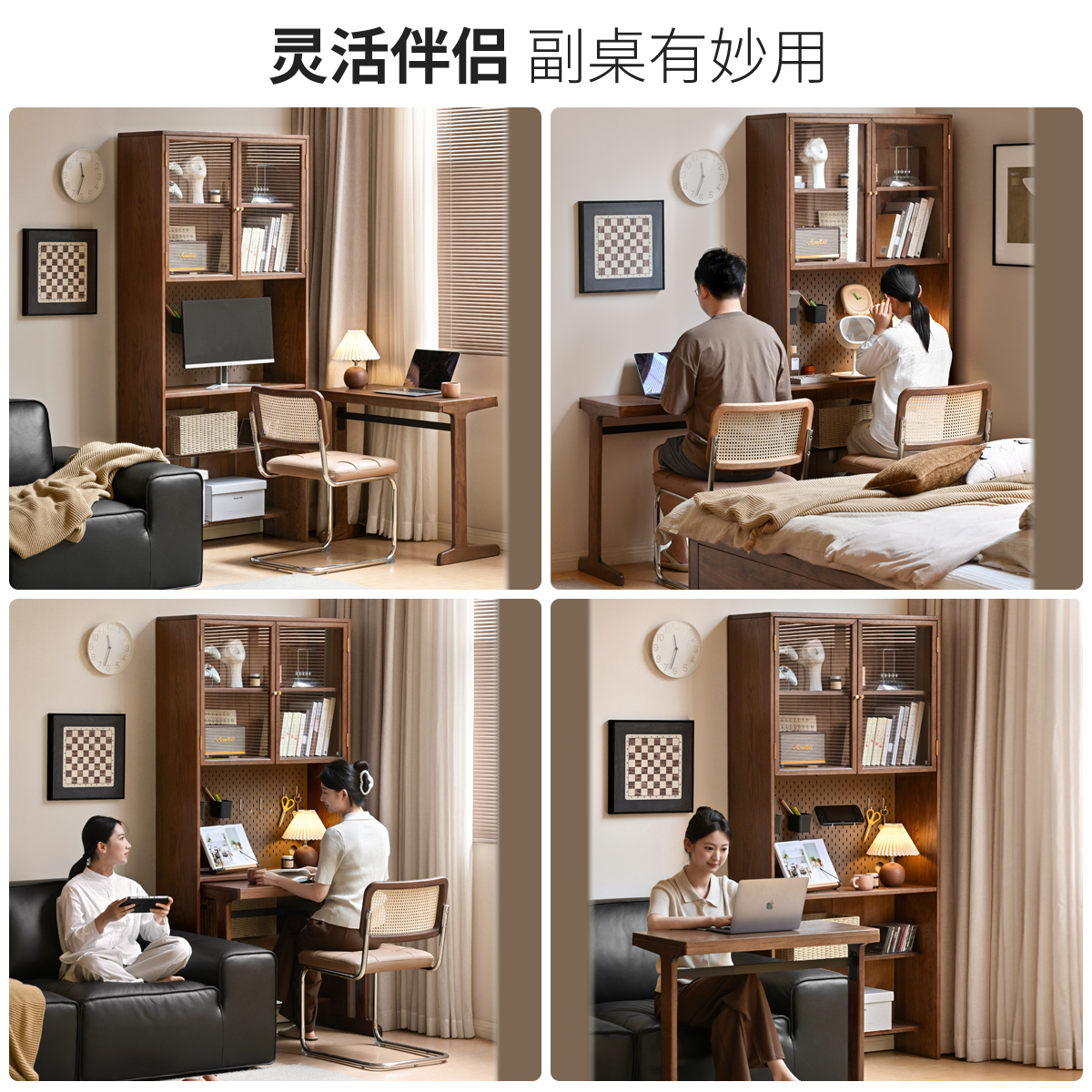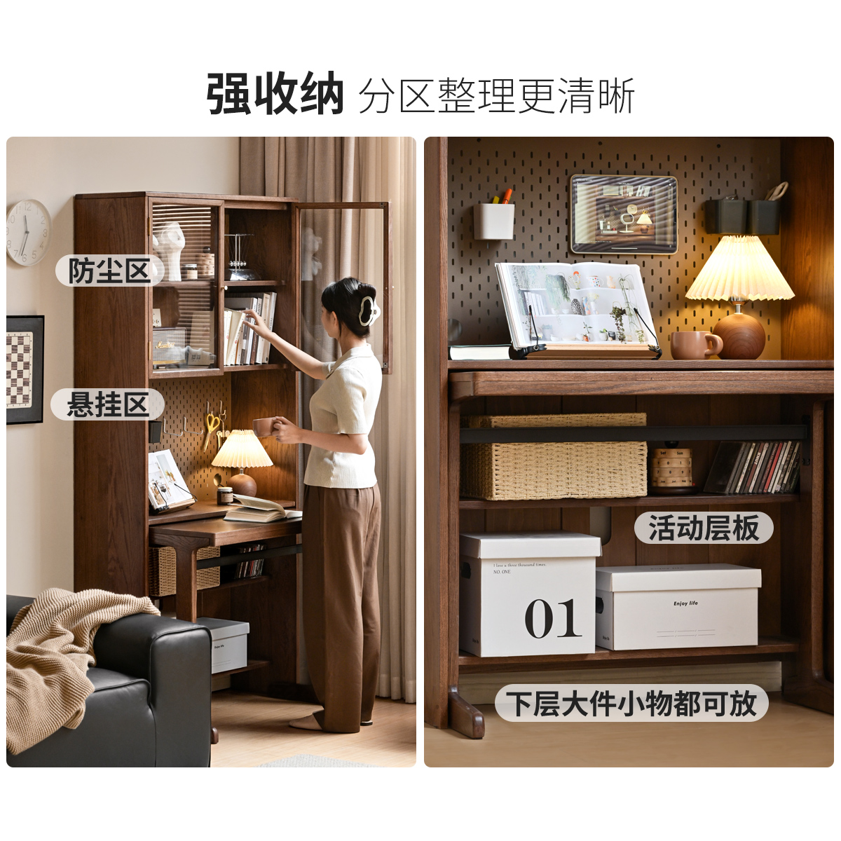 源氏木语百伦沙实木书桌书架一体橡木书柜小户型家用电脑桌学习桌