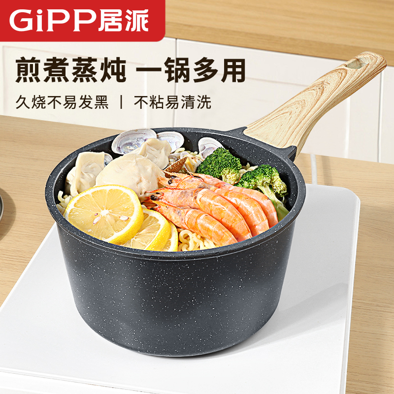 居派麦饭石不粘锅奶锅无涂层蒸汤泡面锅婴儿宝宝辅食锅煎煮一体锅