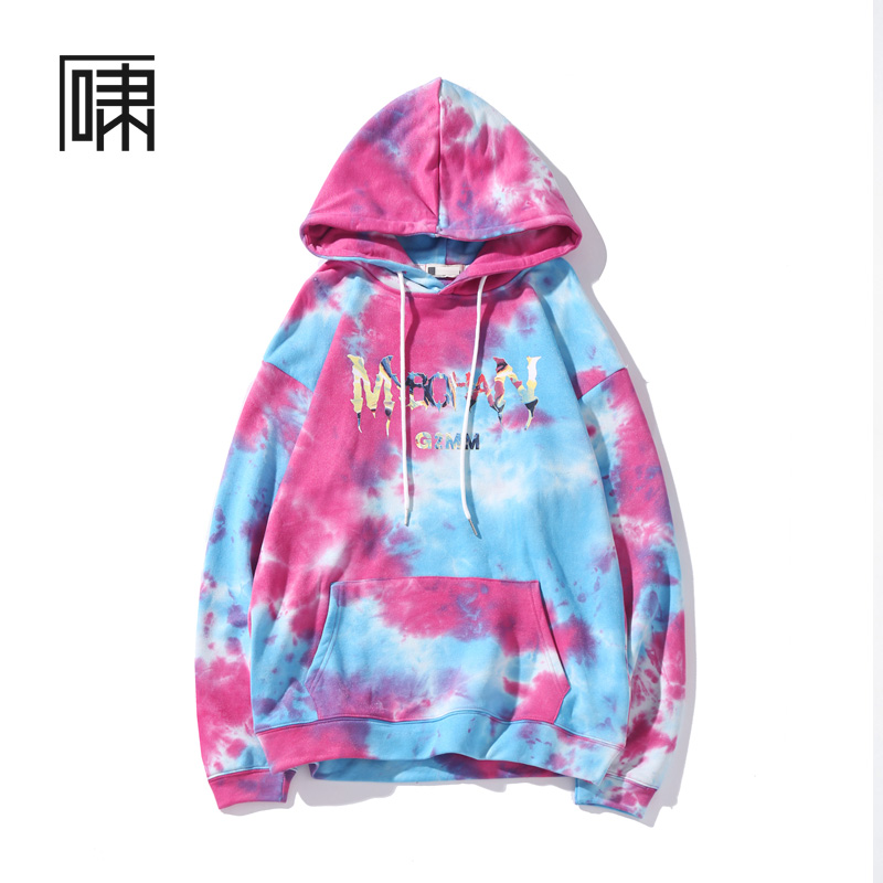 男日系个性 潮牌国潮港风笑脸渐变色连帽卫衣 扎染慵懒风 断码
