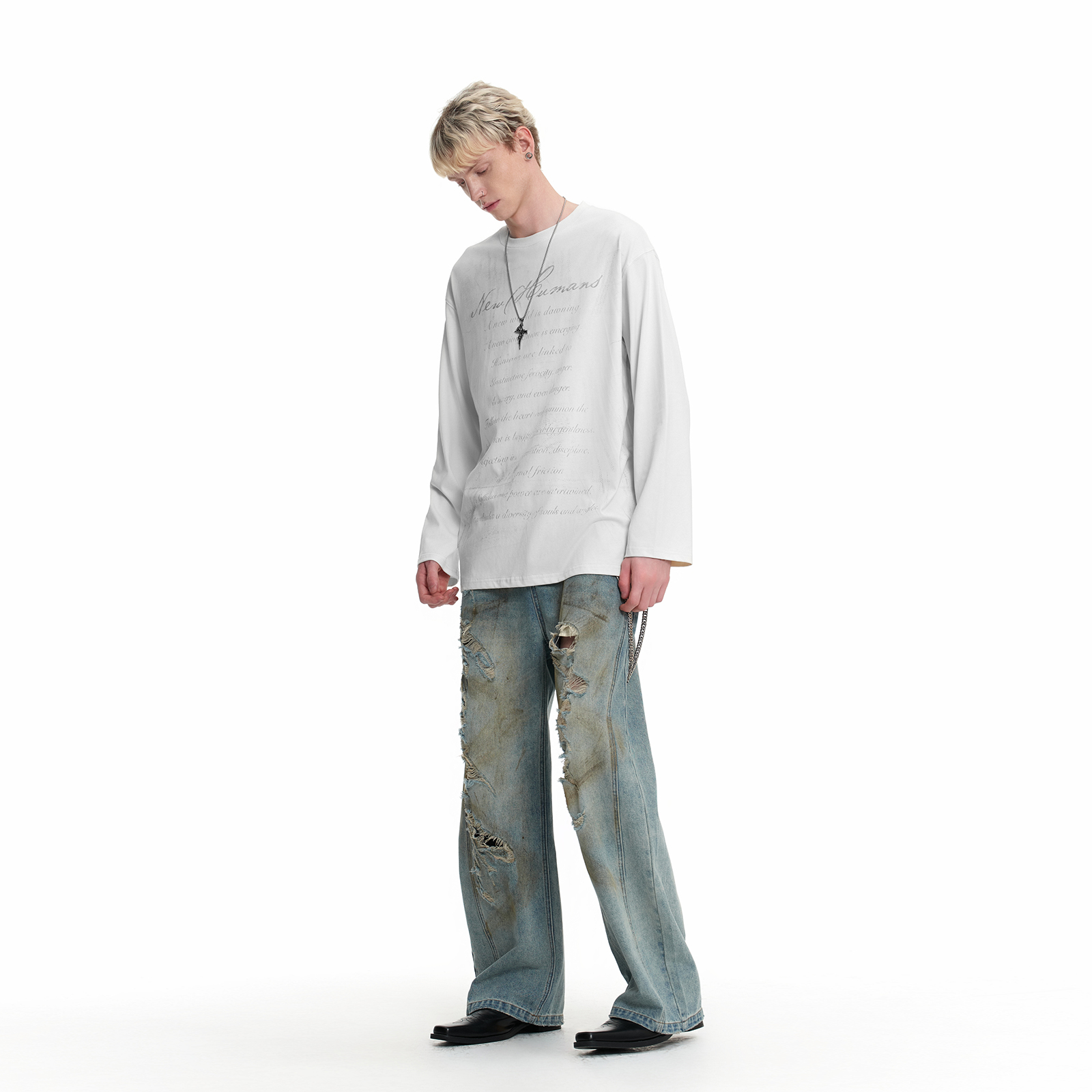 圆领上衣2025年春季 IMXS美式 潮牌黑色打底衫 T恤男 字母印花长袖