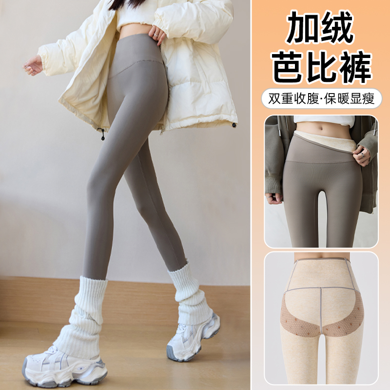 高腰保暖瑜伽裤 加绒加厚羊毛蚕丝打底裤 外穿2025冬季 白色鲨鱼路裤