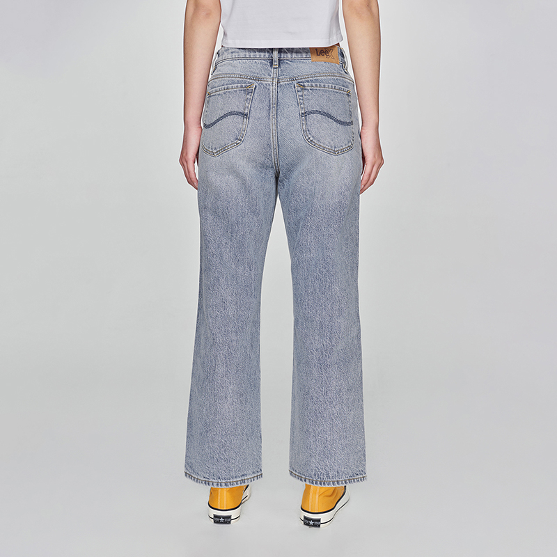 428懒懒裤 Lee25新品 舒适高腰直脚蓝色阔腿女牛仔裤 张凌赫代言