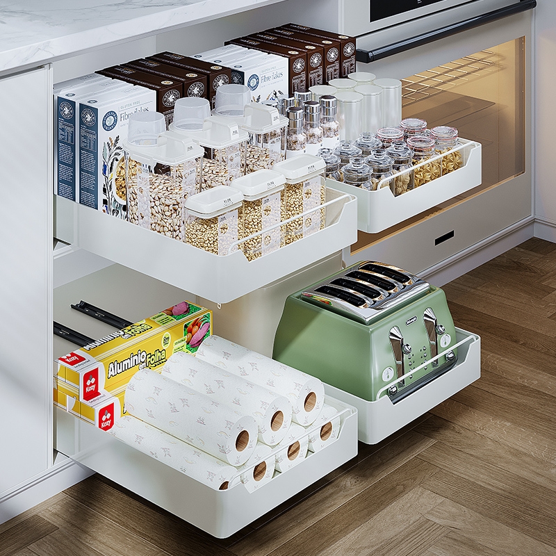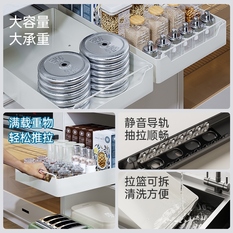 橱柜拉篮抽拉式 收纳盒整理框 厨房置物架下水槽深柜碗碟盘抽屉式