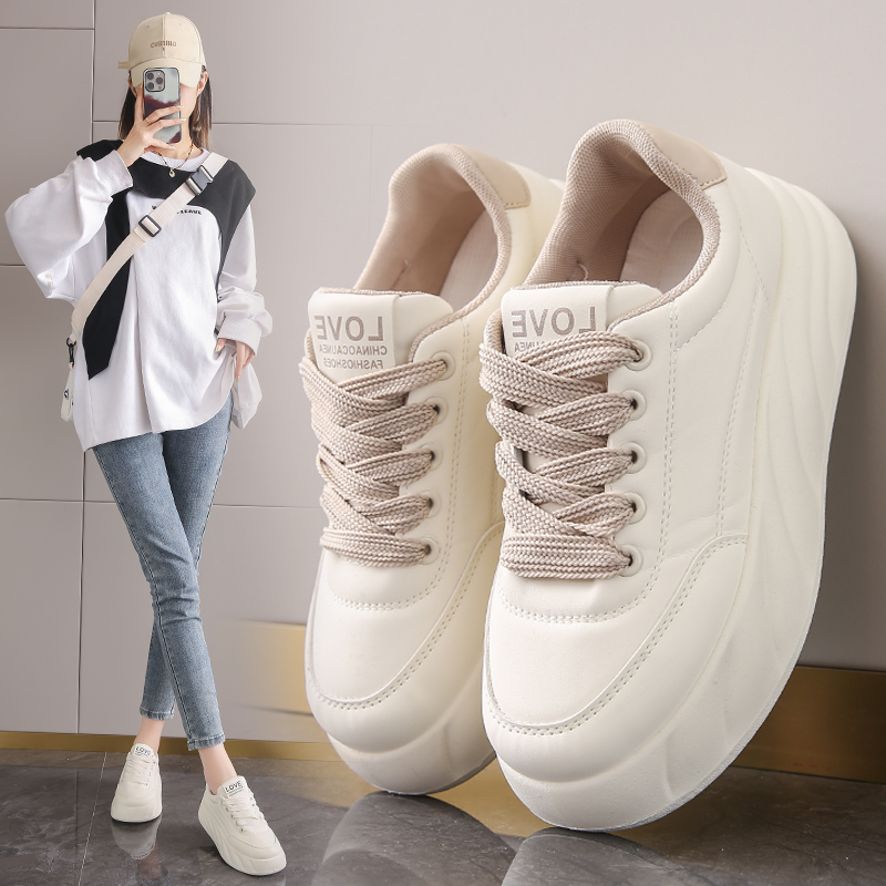 女2025年秋季 百搭运动休闲女鞋 新款 增高板鞋 厚底小白鞋 热风德训鞋