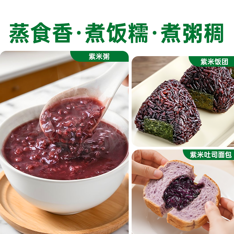 十月稻田紫米1kg五谷杂粮低脂粗粮糯米搭配大米熬粥蒸饭2斤真空