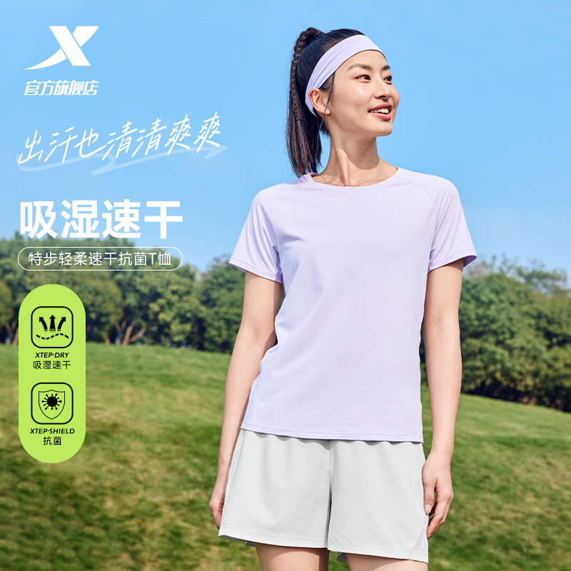 健身运动服 冰丝户外跑步T恤透气上衣男士 特步速干T男夏季 宽松短袖