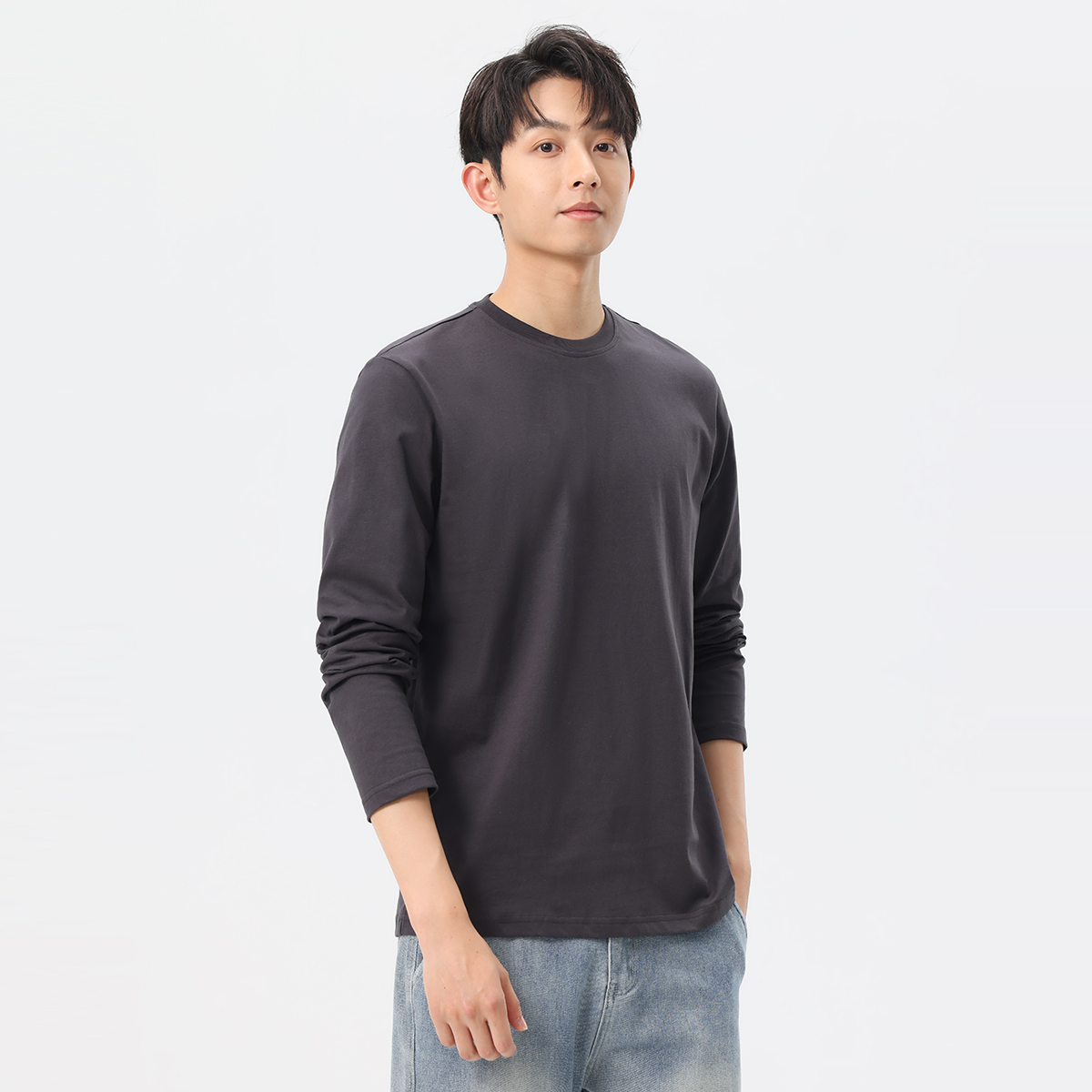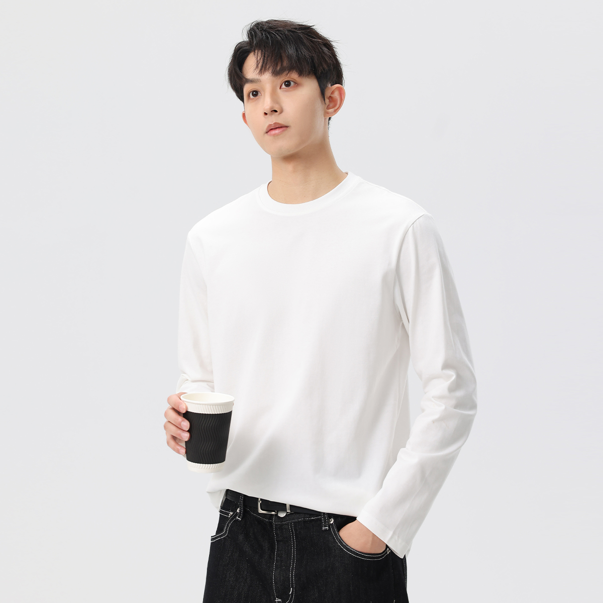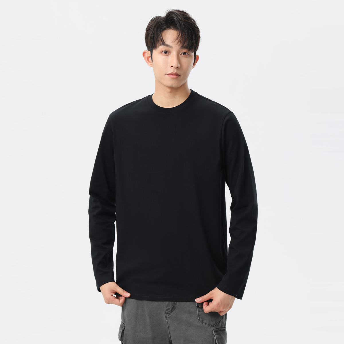 宽松纯色百搭微落肩打底衫 hansca 新款 t恤男2025春季 黑色纯棉长袖