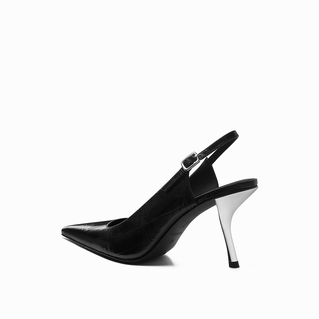 气质礼服凉单女鞋 烫黑色牛皮后空一字带高跟鞋 时尚 新款 2025春夏季