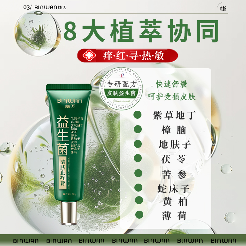 BinWan彬万益生菌小绿管秋冬皮肤干止痒舒缓滋润涂抹草本清肤