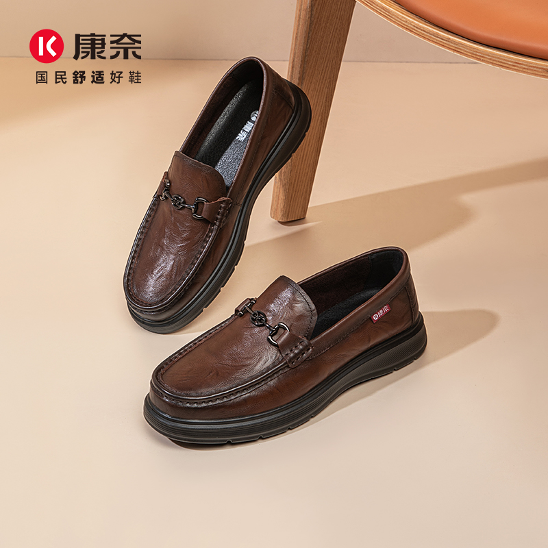 男驾车豆豆鞋 康奈男鞋 英伦复古潮流休闲百搭乐福皮鞋 新款 2025春季