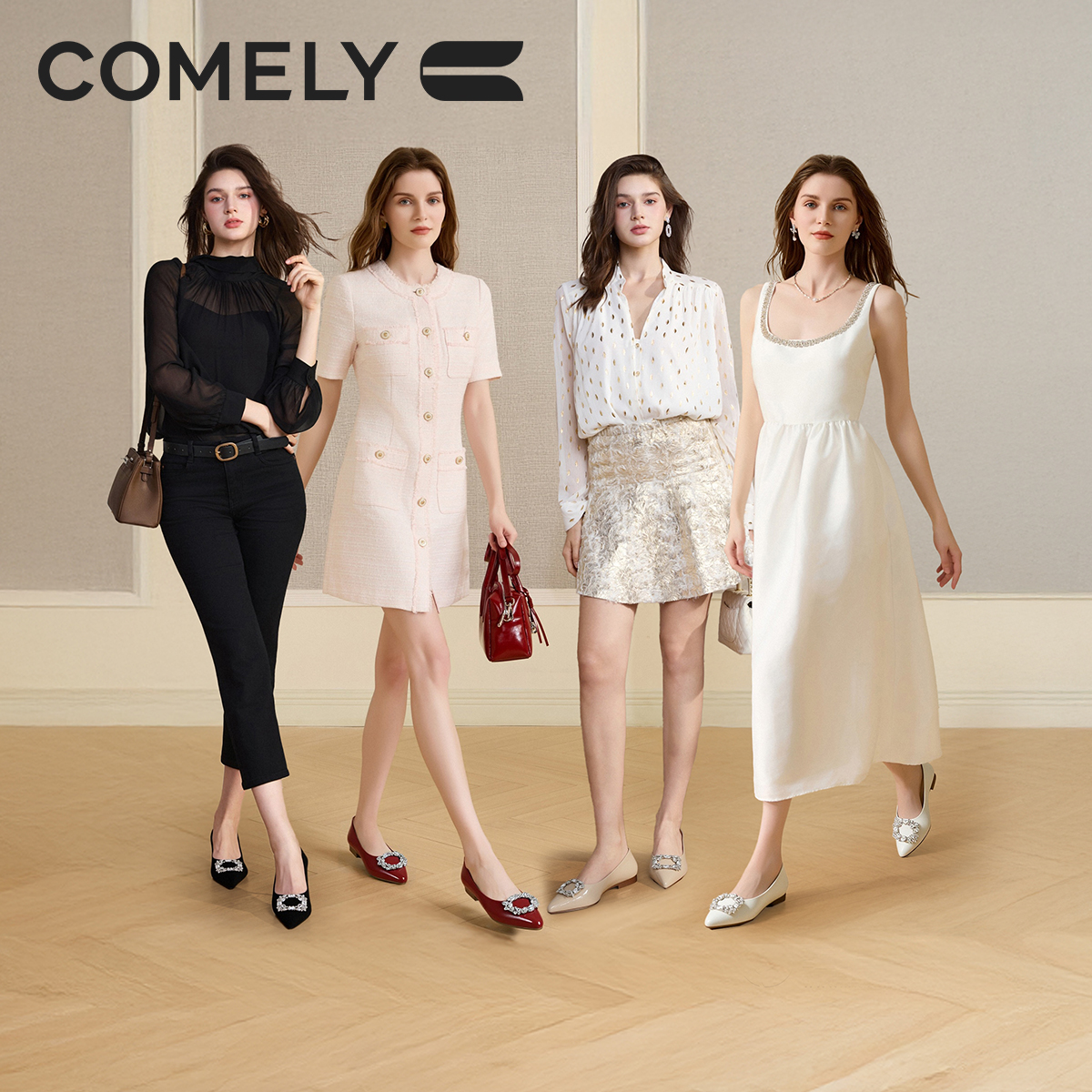 婚鞋 康莉真皮水钻浅口单鞋 尖头方扣低跟女鞋 商场新款 2025年春夏季