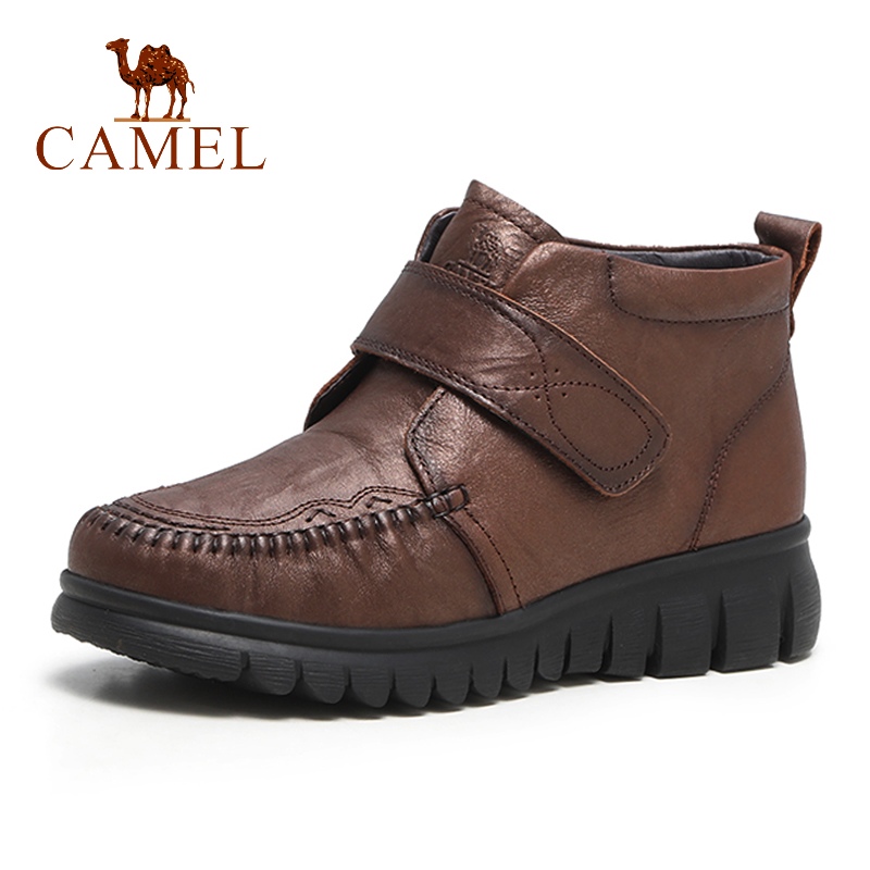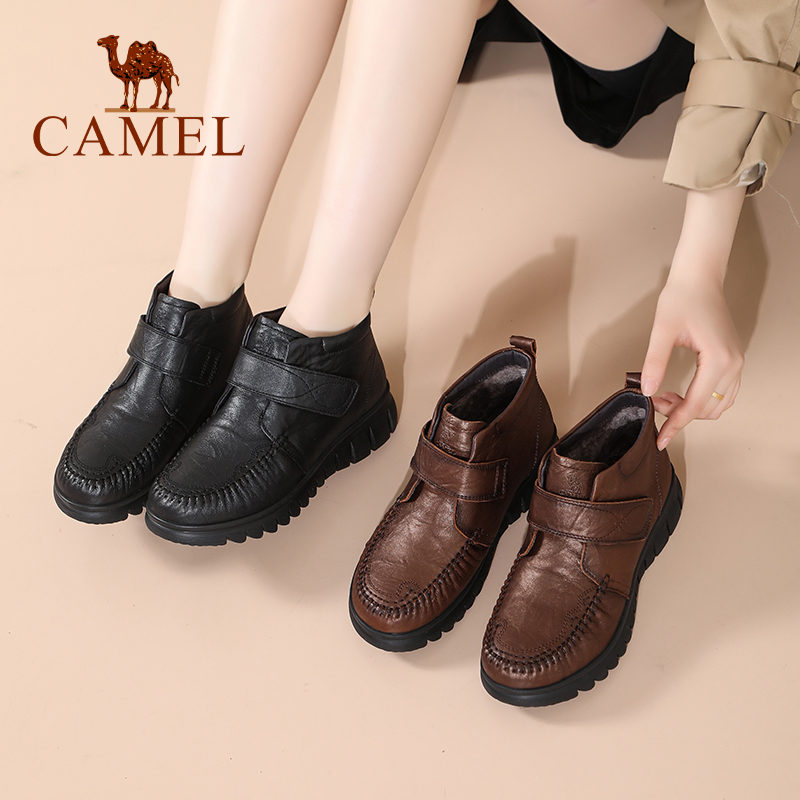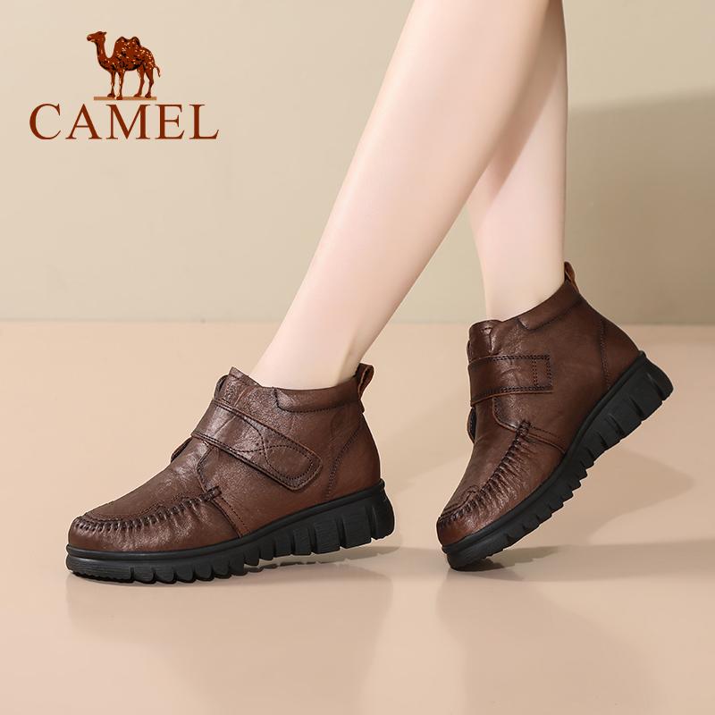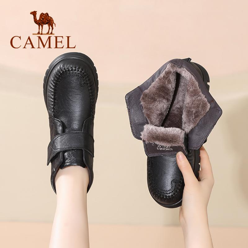中老年加绒保暖棉鞋 Camel 新款 25冬季 真皮羊毛防滑短靴 骆驼女鞋