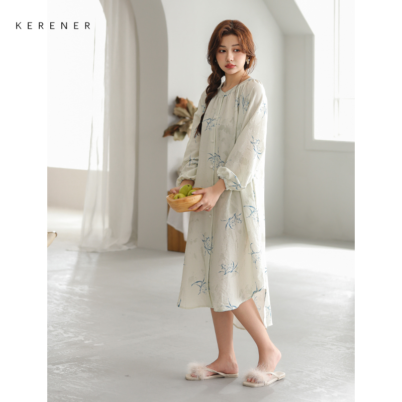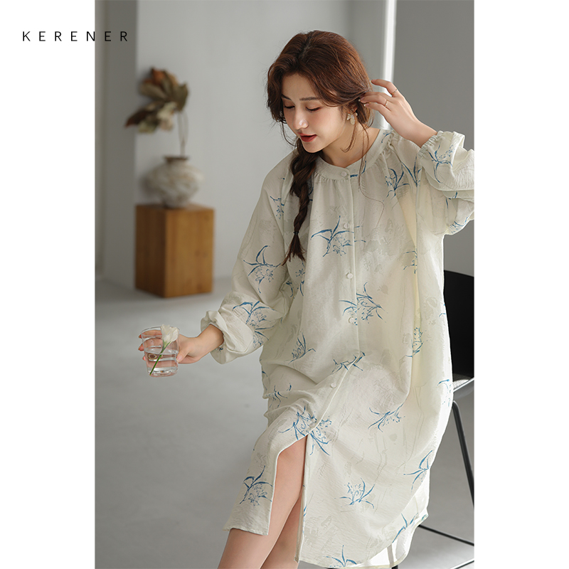 可人儿小众设计师新款 少女睡裙可外穿连衣裙 泡泡绵女睡衣春秋长袖