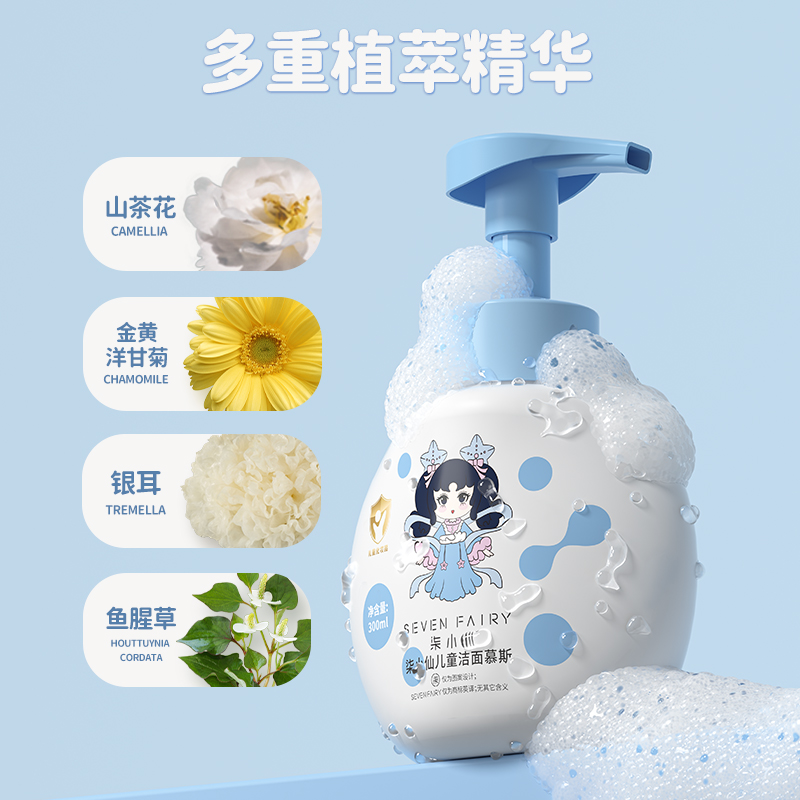 柒小仙儿童洁面慕斯洗面奶泡沫绵密儿童专用洁面泡泡亲肤补水