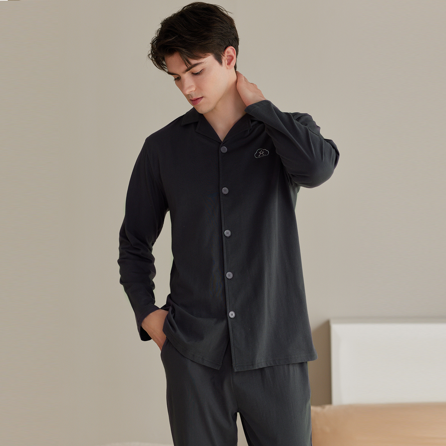 全棉家居服套装 休闲宽松青年男士 开衫 芬腾情侣睡衣女春秋纯棉长袖